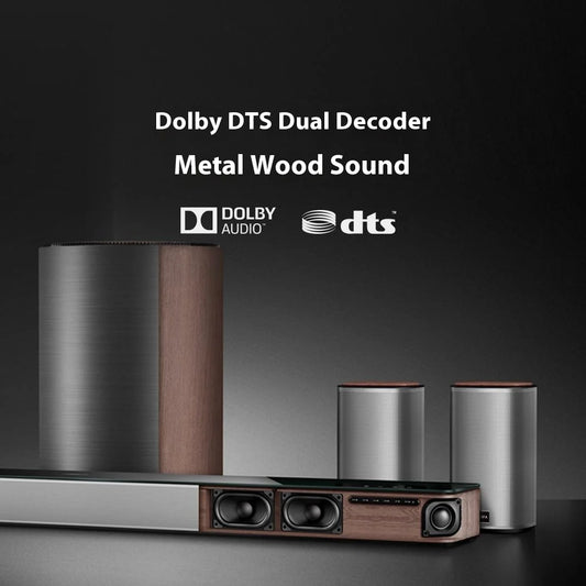 BINNIFA Audio Speaker 5.1 Karaoke Home Theater Max 7S Dolby DTS Dual Decoding SoundBar Rear Subwoofer Bass Wireless Microphones