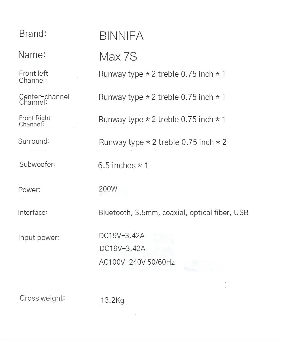 BINNIFA Audio Speaker 5.1 Karaoke Home Theater Max 7S Dolby DTS Dual Decoding SoundBar Rear Subwoofer Bass Wireless Microphones