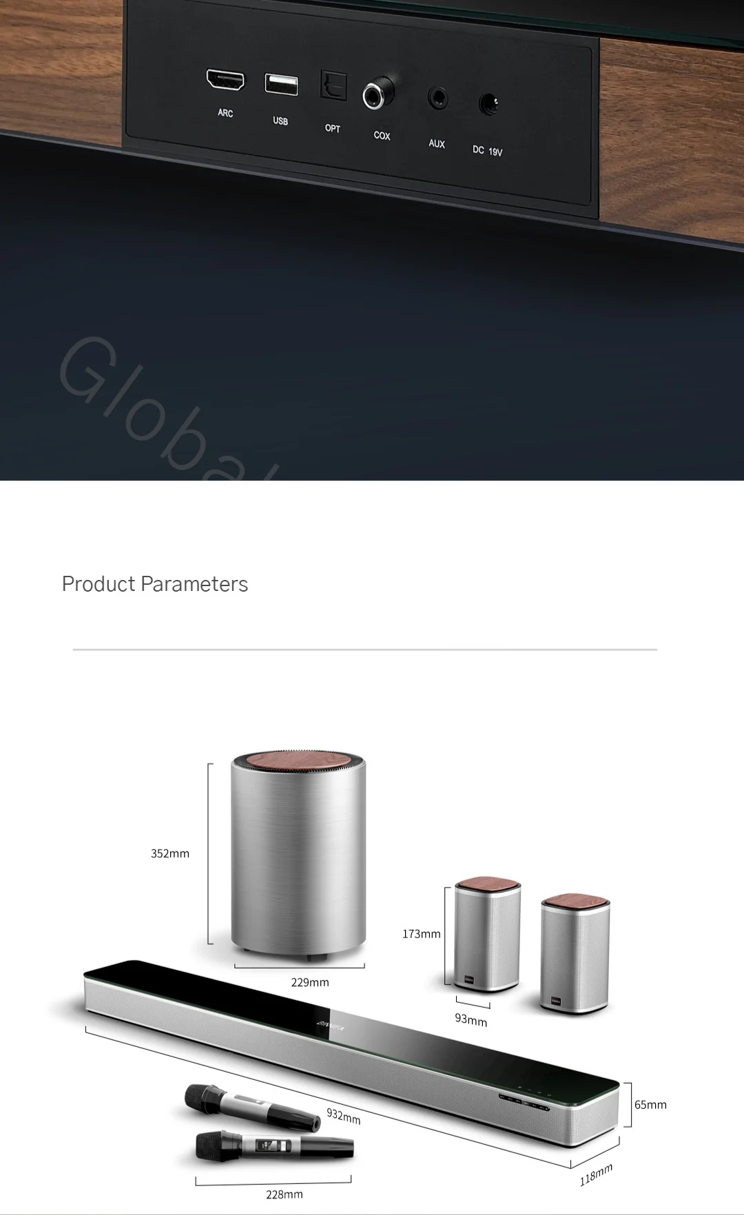 -Rich interfaces, compatible with a variety of audio equipment. Support HDMI (ARC), optical, coaxial, AUX, USB audio input